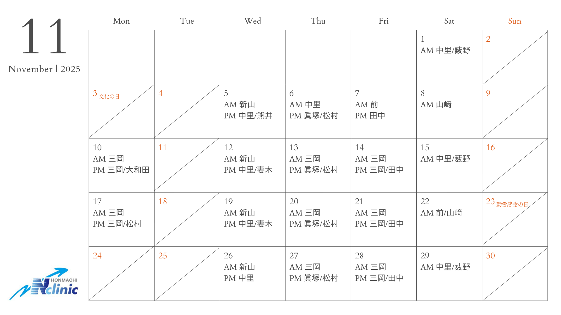 熊井医師による次回診察は11月5日(水)午後診察となります。