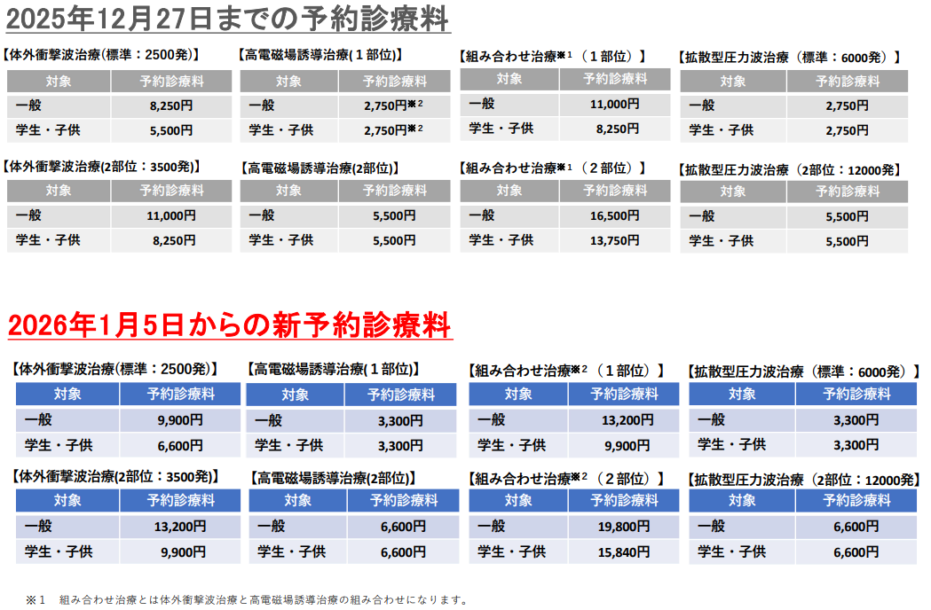 体外衝撃波の治療は組み合わせ治療を受けられる方に限って、初回から1万円(税別)となっております。